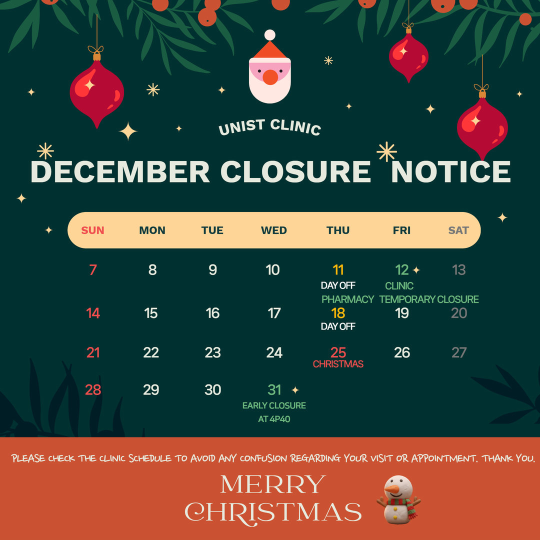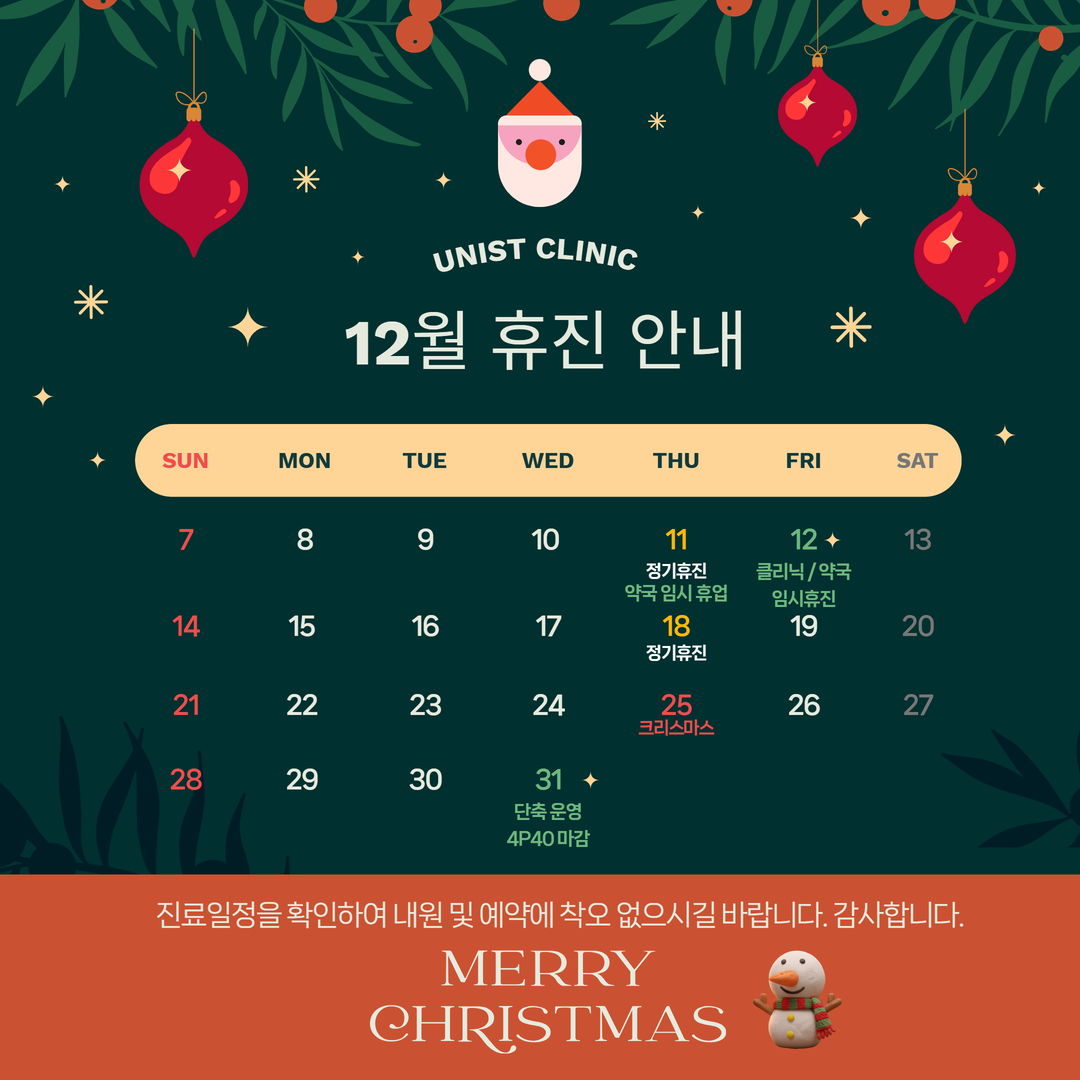 [클리닉/약국] 12월 휴진일 안내 (Clinic December Schedule Notice)